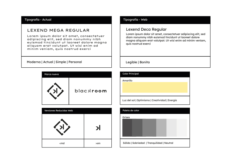 Resideño de Logotipo Blackroom. Creación de concepto e identidad corporativa. Prototipado y Desarrollo Front-end de la página web. Proyecto final del Máster en Diseño Web y Desarrollo Front-end. Finalista a Alumna del año.